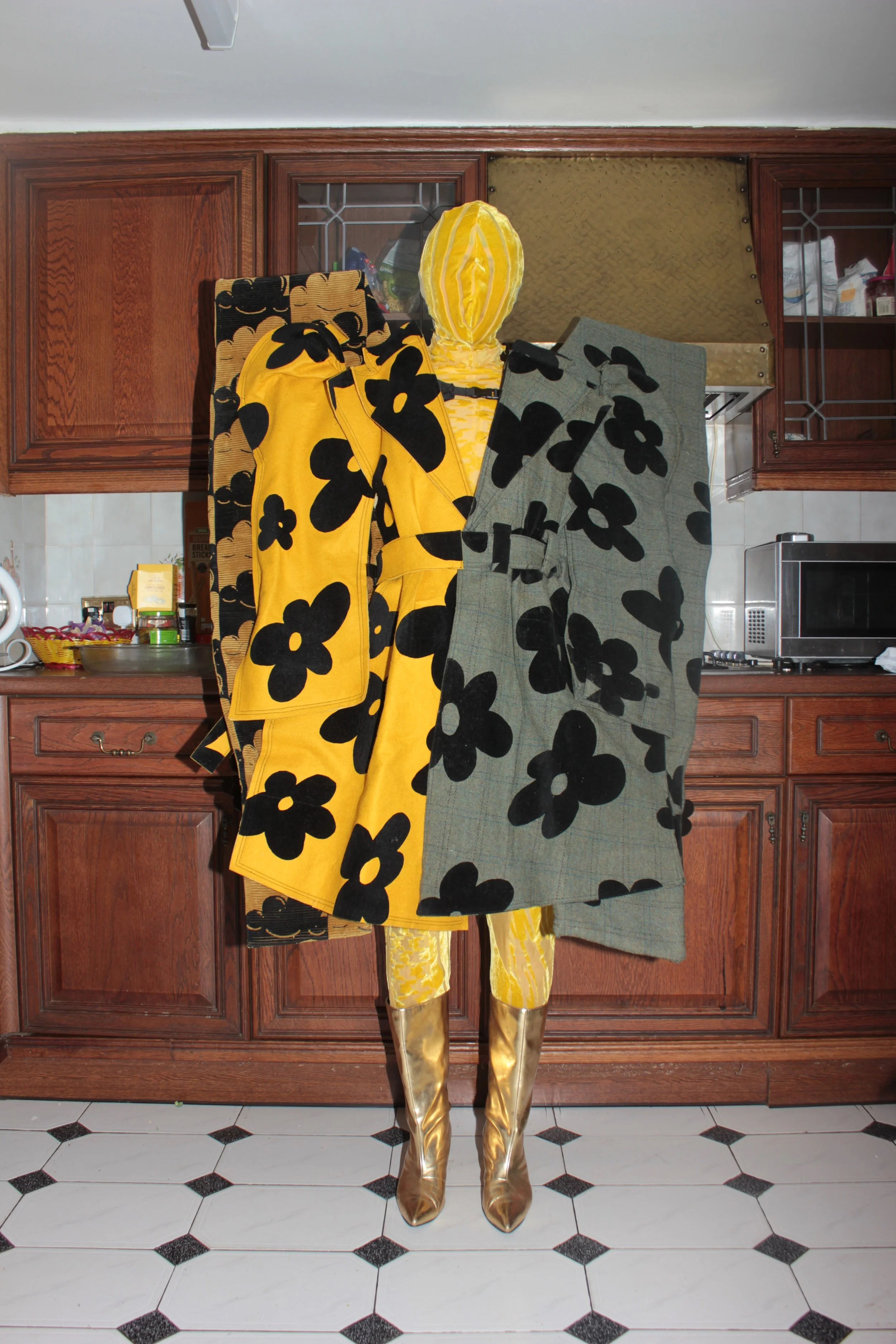 Further pushing the boundary between fashion and sculpture, the collection incorporates 3D modeling methods including foam molding, vacuum forming, and welded steel structures. The result is a surreal, immersive world where garments become totems—larger-than-life silhouettes that echo the boldness of the prints and the intensity of the themes. Little Town Blue is both playful and haunting, a visual poem that confronts the viewer with the beauty and brutality of a dream turned inside out.